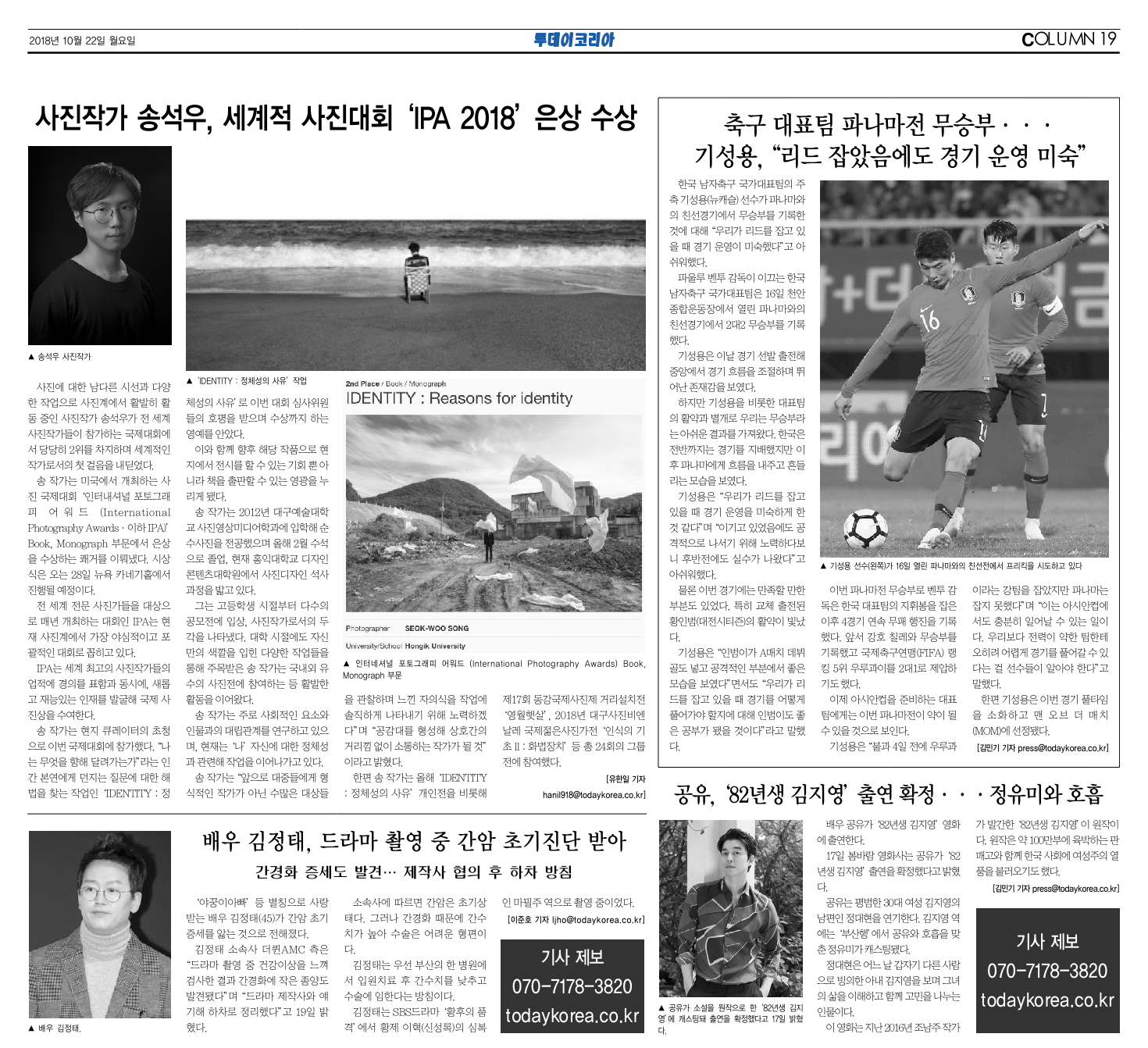 투데이코리아 2018.10.22 I 사진작가 송석우, 세계적 사진대회 'IPA 2018' 은상 수상